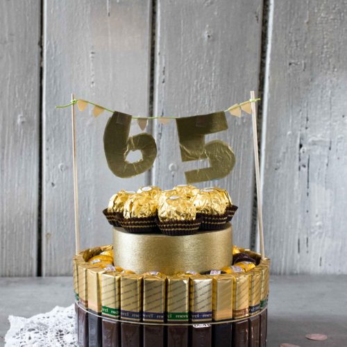 Süßigkeitenzusammensetzung in Form eines Kuchens. Sie müssen nichts backen, um sie zu gestalten: