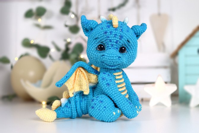 Crochet Runde Spielzeug haben Popularität in Dutzenden von Ländern auf der ganzen Welt gewonnen. Amigurumi Drache ist keine Ausnahme. Diese Figur hat eine Reihe von charakteristischen Merkmalen: große, ausdrucksstarke Augen, einen Reptilienschwanz, einen Kamm auf dem Rücken. In der Tradition der Amigurumi sind solche Spielzeuge überhaupt nicht gruselig, sondern eher niedlich und lustig und sehen sehr attraktiv aus.