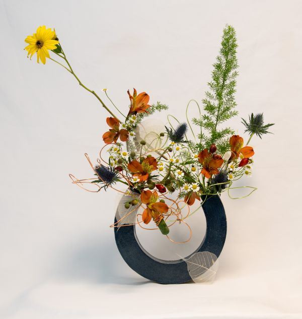 Die freieste der Varianten, bei der nicht-triviale Materialien verwendet werden, um die Schönheit der natürlichen Materialien zu betonen. Oft sind diese Ensembles surrealistisch, eklektisch. Sie vereinen die älteste Kunst und eine neue, moderne Sicht auf die Welt. Verschiedene Änderungen der Formen, das Hinzufügen beliebiger Materialien und dekorativer Elemente, einschließlich künstlicher Elemente, sind erlaubt. Lebende Blumen, getrocknetes Holz, Kunststoff, Metall, Glas, Stein können in einem Ensemble kombiniert werden.