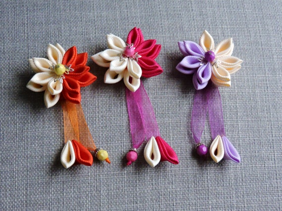 Es gibt jedoch auch eine Variante der Aussprache von ka sasi, die wörtlich „festgeklebte Blumen“ bedeutet. Es wurde in Anlehnung an die Tradition verwendet, lebende Pflanzen in das Haar zu flechten, bevor man die Götter anruft. Die schönsten Kanzashi lassen wirklich daran denken, dass sie keine von Menschenhand geschaffene Kreation sind, sondern ein Geschenk der Natur selbst.