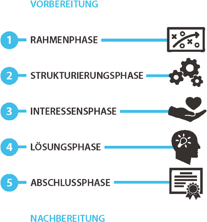 Der Verlauf eines Geschäftsgesprächs von seinem Beginn bis zum Erreichen des gesetzten Ziels ist in der Regel in bestimmte Stufen oder Phasen unterteilt.