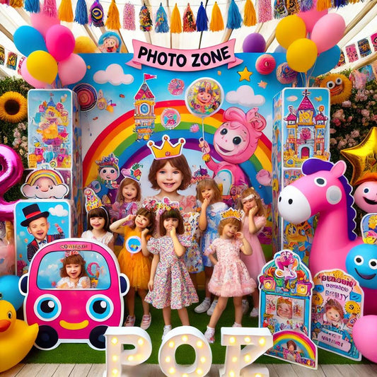 - Thema: Wählen Sie ein Thema, das Ihrem Kind gefällt, wie zum Beispiel Tiere, Einhörner, Prinzessinnen oder Farben. Das Thema wird die gesamte Dekoration und die Auswahl der Requisiten leiten.