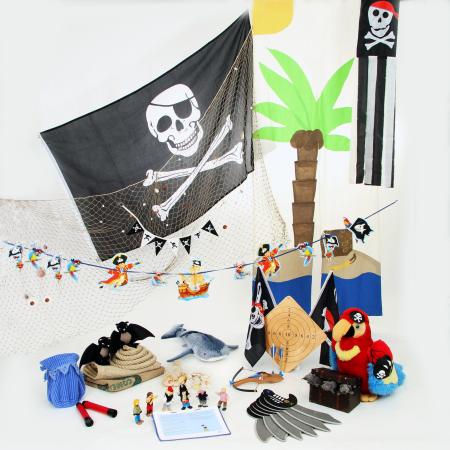 Aber man kann sich nicht nur auf Fahnen beschränken. Luftballons mit Bildern von Piratenmotiven werden auch dazu beitragen, den Raum interessanter zu machen. Auf dem Tisch werden thematisch passende Servietten, Tischtücher und Gläser liegen. Der Tisch und die Stühle sollten einfach sein und aus groben Brettern bestehen.