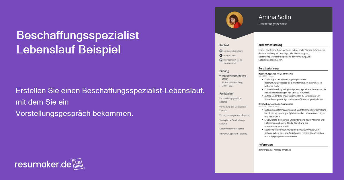 - Berufserfahrung: Auflistung der bisherigen Anstellungen, Tätigkeiten und Erfolge im Bereich Beschaffung und Einkauf.