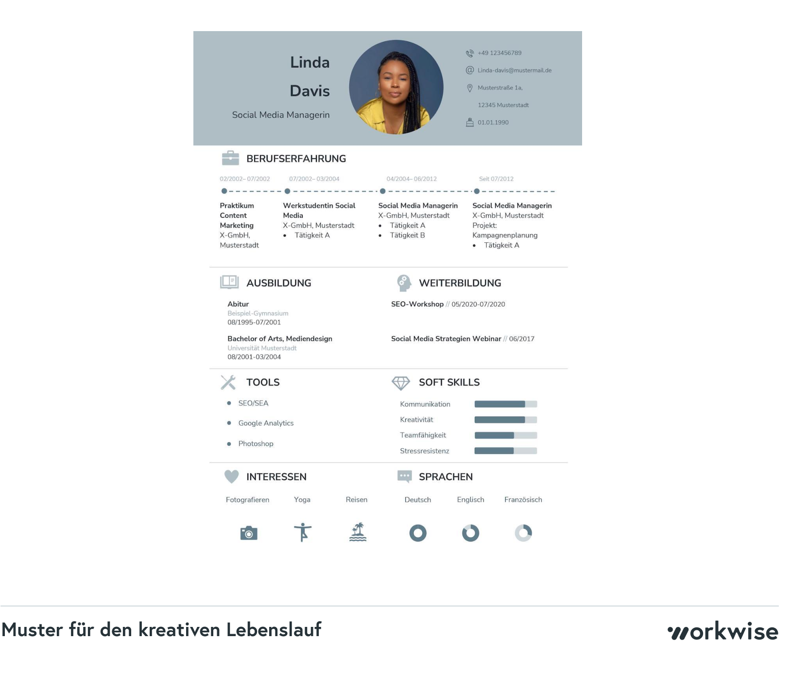 Beispiele für kreative Lebensläufe sind: interaktive PDF-Dateien, die es dem Arbeitgeber ermöglichen, durch Links zu Projekten und Arbeitsproben zu navigieren, oder Video-Lebensläufe, die die persönliche Vorstellungskraft und Kommunikationsfähigkeiten demonstrieren. Solche Formate können insbesondere in kreativen Branchen wie Grafikdesign, Marketing, Film oder Medien von Vorteil sein.